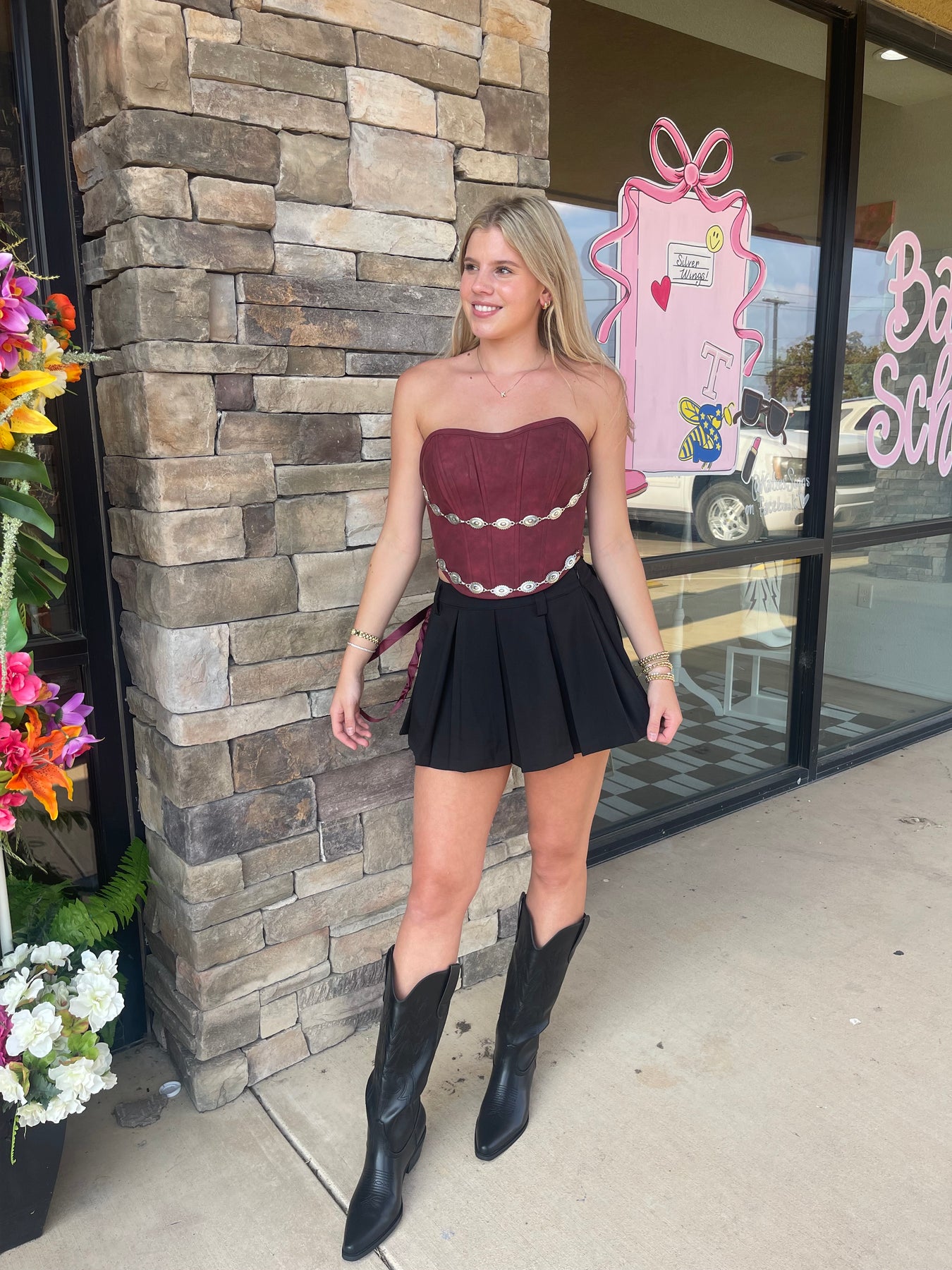 Elevate your outfit with the Western Silver Concho Corset Top, a statement piece that blends vintage western charm with modern femininity. Crafted in a structured cream fabric, this strapless corset features defined boning for a flattering silhouette and is accented with intricate silver concho chain details that wrap around the waist. Perfect for pairing with high-rise denim or wide-leg trousers for a bold, fashion-forward look.