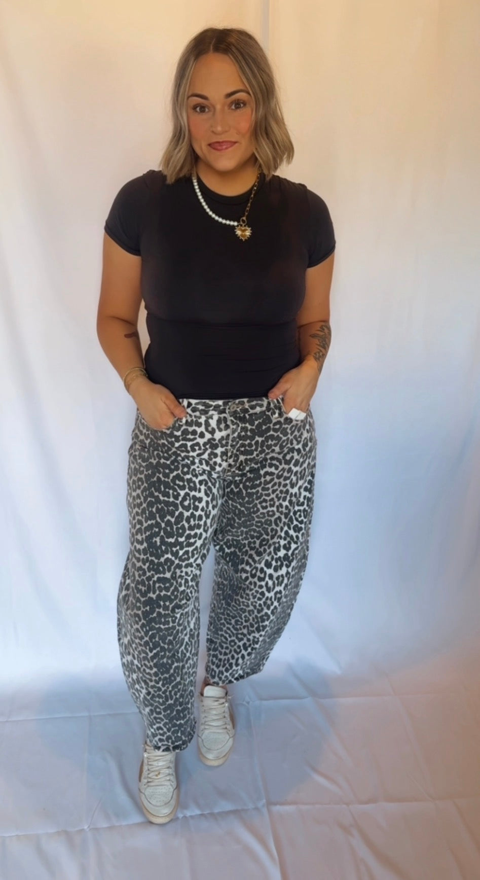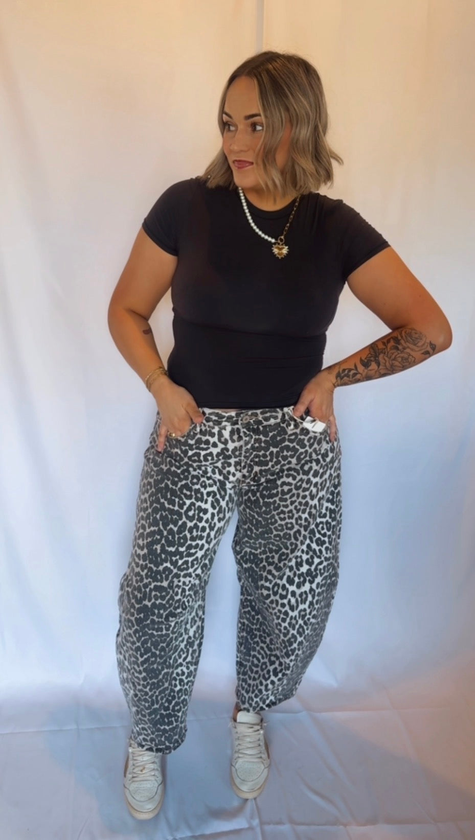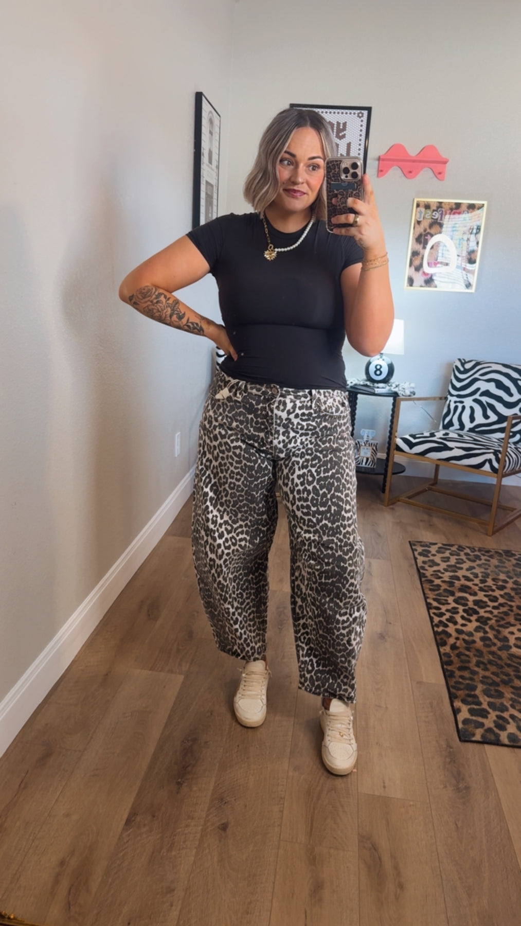 High rise leopard barrel jeans